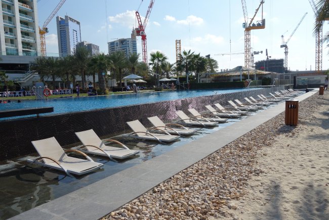 Pool und Liegenreihe - Hotel DoubleTree by Hilton Dubai - Jumeirah Beach