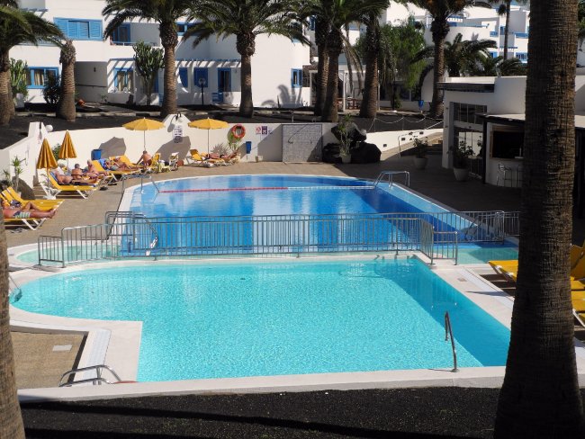 Die Poollandschaft vom Hotel Costa Mar mit den beiden unterschiedlich tiefen Becken für Erwachsene.
