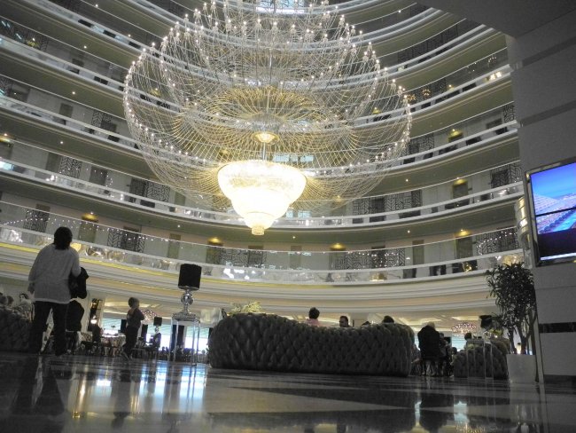 Ein riesiger Deckenleuchter ist der Hingucker im Lobbybereich.