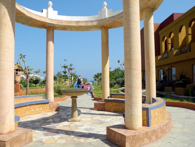 Ein Säulenelement verleiht der Anlage ein landestypisches Aussehen.