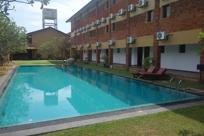 Die meiste Zeit des Tages sorgen die Gebäude des Hotels The Long Beach Resort selbst für viel Schatten am Pool.
