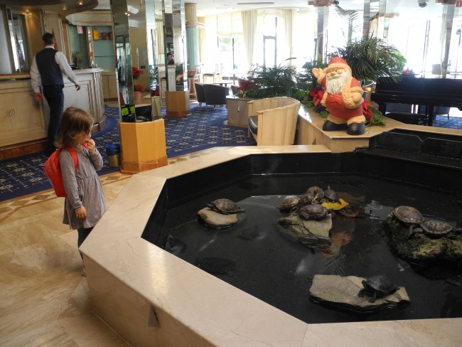 In einem Brunnen im Eingangsbereich des Hotels lebt ein gutes Dutzend Schildkröten, die gerade auch bei den kleinen Gästen sehr beliebt sind.