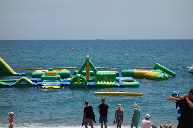 Am Strand vor dem Hotel H·TOP Royal Sun schwimmt dieses Spielgerät im Meer.