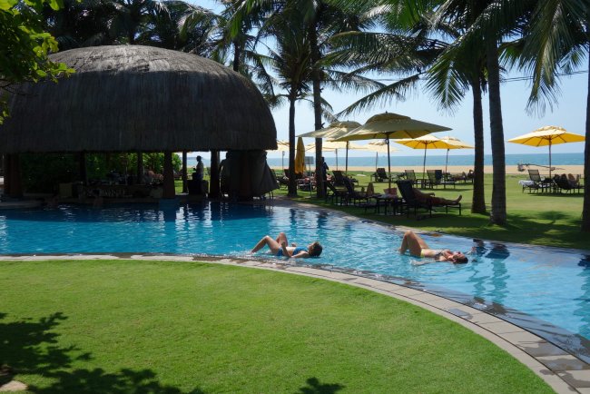 Ein Teil des Pools vom Hotel Heritance Negombo ist sehr flach, hier kann man dann im Pool liegen und die Sonne genießen.
