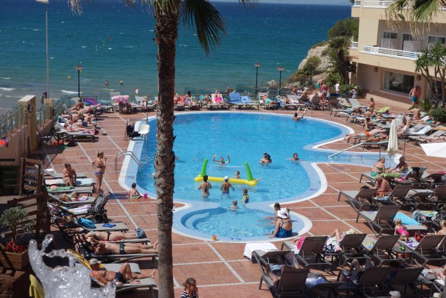 Die Sonnenterrasse mit dem Swimmingpool vom Hotel Cala Font.