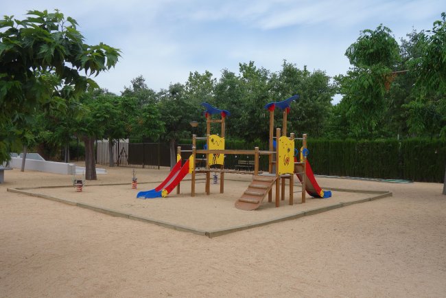 Die kleinen Gäste im Hotel Mediterraneo Park nutzen diesen Spielplatz auf einer großen Sandfläche.