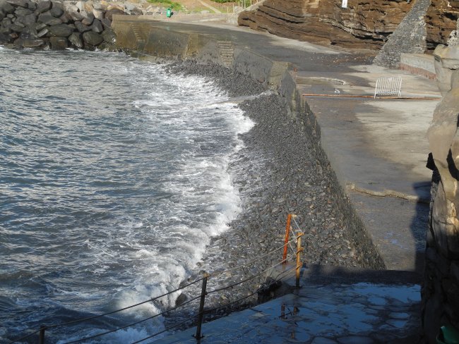 Der Strand vor dem Hotel Melia Madeira Mare besteht aus dunklen Steinen und ist kaum zum Baden geeignet.