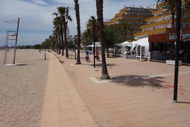 Direkt vor dem Hotel Marian Platja verläuft die Promenade für Fußgänger.