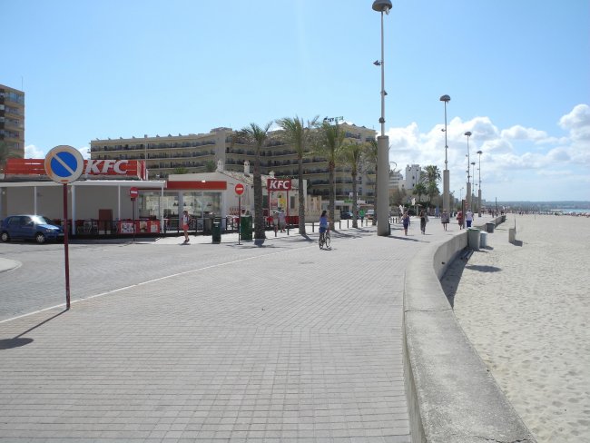 Die breite Strandpromenade von Playa de Palma verläuft direkt vor dem Hotel THB El Cid und führt kilometerweit bis nach El Arenal.