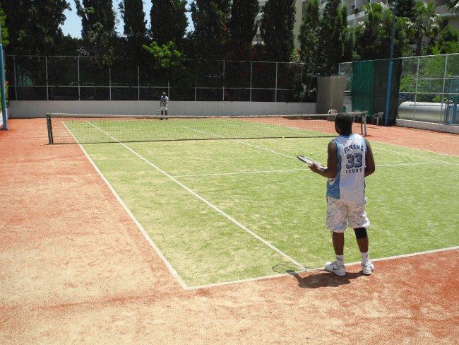 An Sportmöglichkeiten ist auch dieser Tennisplatz vorhanden.