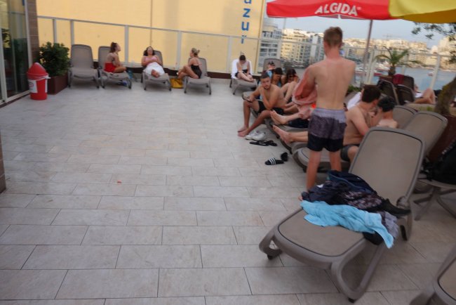 Die Dachterrasse ist eher etwas spartanisch hier im Bayview Hotel.