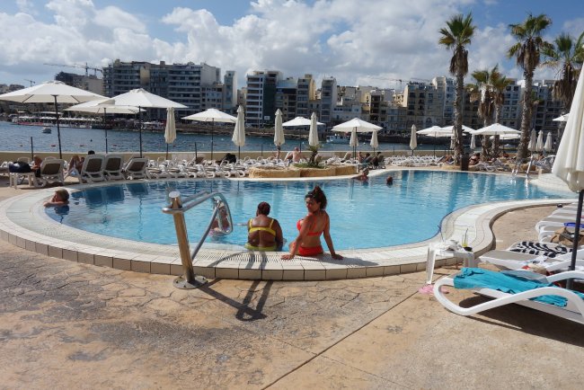 Vom Pool und der Terrasse aus des Hotels Cavalieri Art hat man wunderbaren Meerblick.