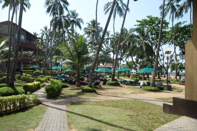 Im Garten des Hotels Royal Palms Beach kann man direkt den Zugang in das Areal des Schwesterhotels Tangerine Beach nehmen.