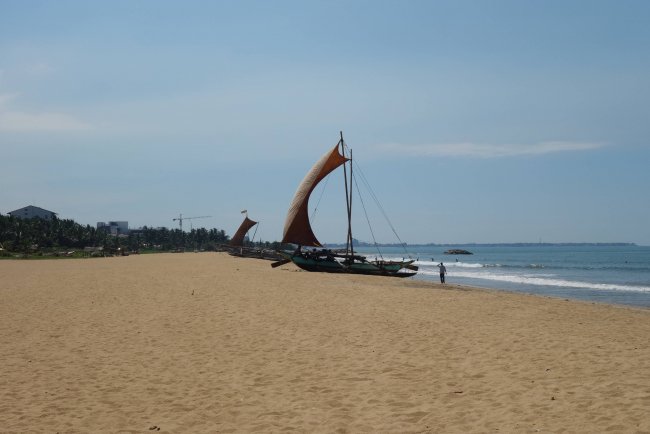 Durch die Größe des Strandes hat man vor dem Hotel Jetwing Sea viel Platz, kein Problem also dass hier einheimische Fischer ihre Boote parken.