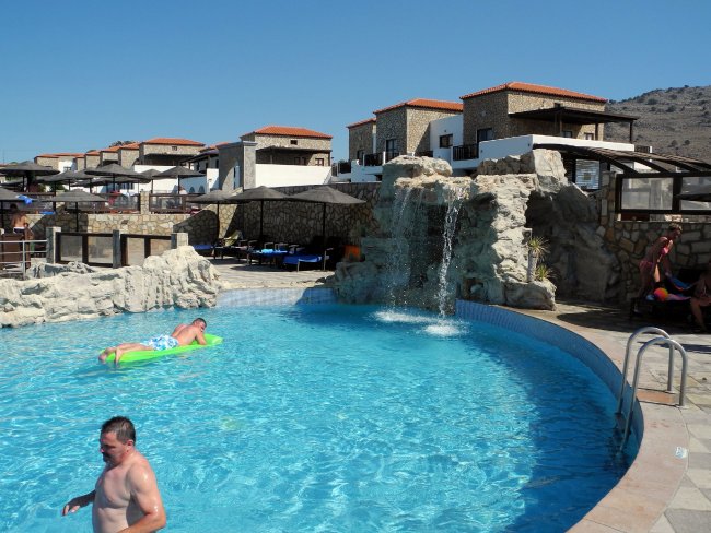 Auch ein Wasserfall ist in den Poolbereich eingearbeitet.