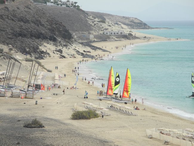 Beim Strand unterhalb des Club Jandia Princess können Wassersportaktivitäten wie Segelboote oder Surfbretter entliehen werden.