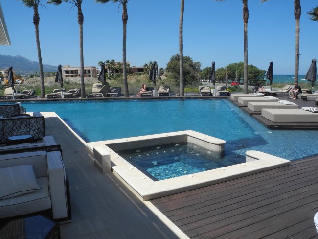 Im Schwimmbecken vom Hotel Aqua Blu Boutique & Spa ist in einer Ecke ein Whirlpool integriert.