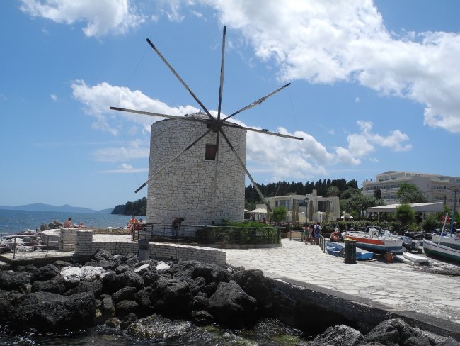 Nur ein paar Meter vom Hotel Mayor Mon Repos Palace entfernt findet sich eine kleine Windmühle an der Küste.