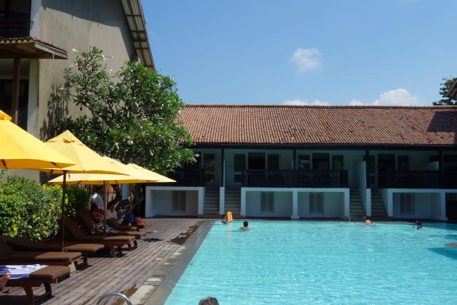 Der Pool des Schwesterhotels Jetwing Blue grenzt direkt an den Bereich vom Jetwing Beach an.