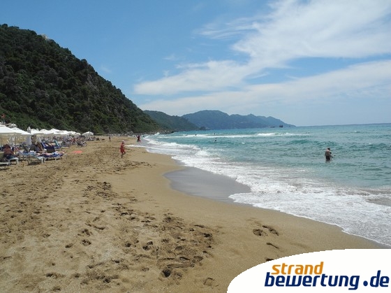 Der Glyfada Beach fällt flach ins Meer ab, die ersten 30 Meter kan man gut im Wasser stehen..